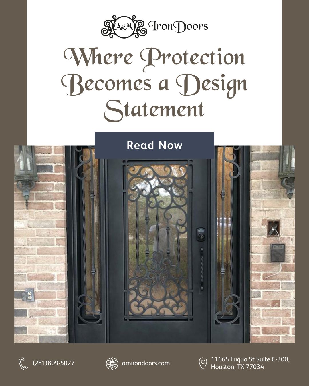 A&M Iron Doors is a family-owned business with over 20 years of experience crafting high-quality custom iron and steel doors. Based in Houston, TX, we manufacture our doors in Nuevo León, Mexico, ensuring exceptional craftsmanship and durability. Our showroom, located at 11665 Fuqua St Suite C-300, Houston, TX 77034, offers a variety of elegant designs for homeowners and businesses. We specialize in single and double doors, doors with sidelights, wine cellar doors, stair rails, and windows, blending security with sophistication. At A&M Iron Doors, we are committed to delivering superior quality, innovative designs, and outstanding customer service.