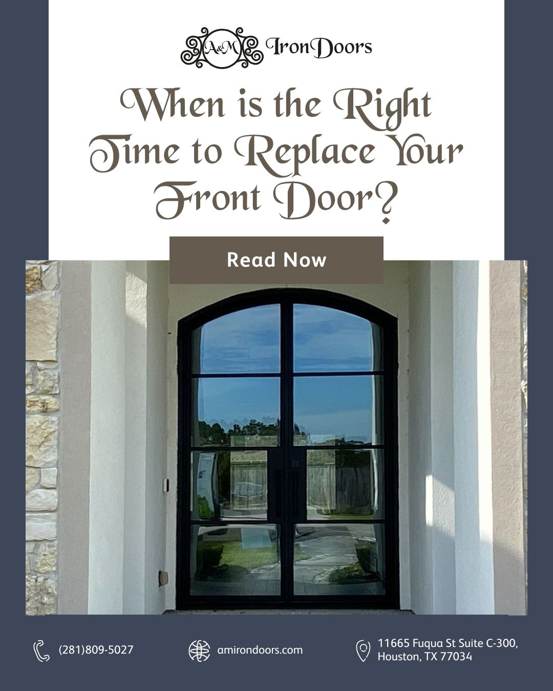 A&M Iron Doors is a family-owned business with over 20 years of experience crafting high-quality custom iron and steel doors. Based in Houston, TX, we manufacture our doors in Nuevo León, Mexico, ensuring exceptional craftsmanship and durability. Our showroom, located at 11665 Fuqua St Suite C-300, Houston, TX 77034, offers a variety of elegant designs for homeowners and businesses. We specialize in single and double doors, doors with sidelights, wine cellar doors, stair rails, and windows, blending security with sophistication. At A&M Iron Doors, we are committed to delivering superior quality, innovative designs, and outstanding customer service.