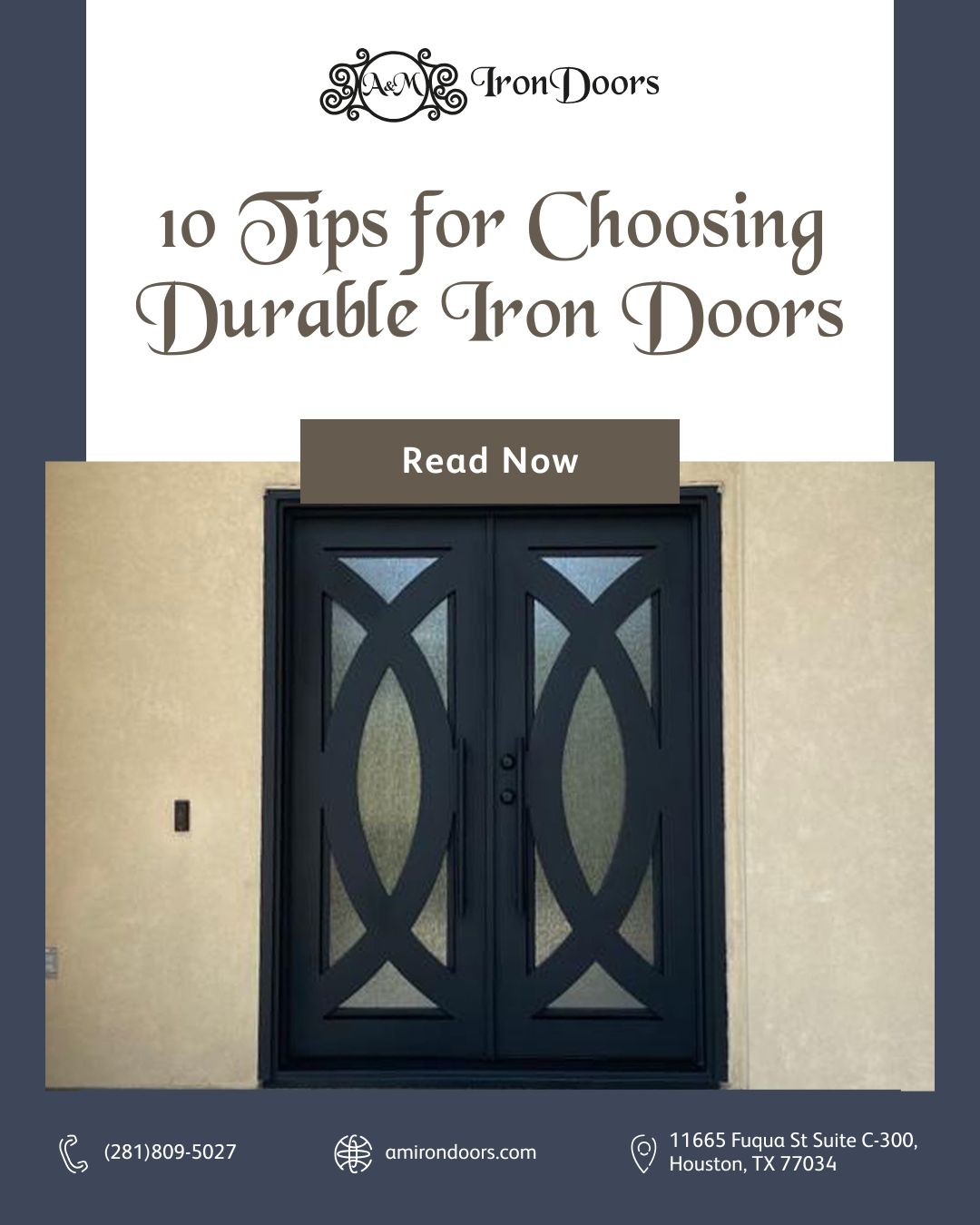 A&M Iron Doors is a family-owned business with over 20 years of experience crafting high-quality custom iron and steel doors. Based in Houston, TX, we manufacture our doors in Nuevo León, Mexico, ensuring exceptional craftsmanship and durability. Our showroom, located at 11665 Fuqua St Suite C-300, Houston, TX 77034, offers a variety of elegant designs for homeowners and businesses. We specialize in single and double doors, doors with sidelights, wine cellar doors, stair rails, and windows, blending security with sophistication. At A&M Iron Doors, we are committed to delivering superior quality, innovative designs, and outstanding customer service.