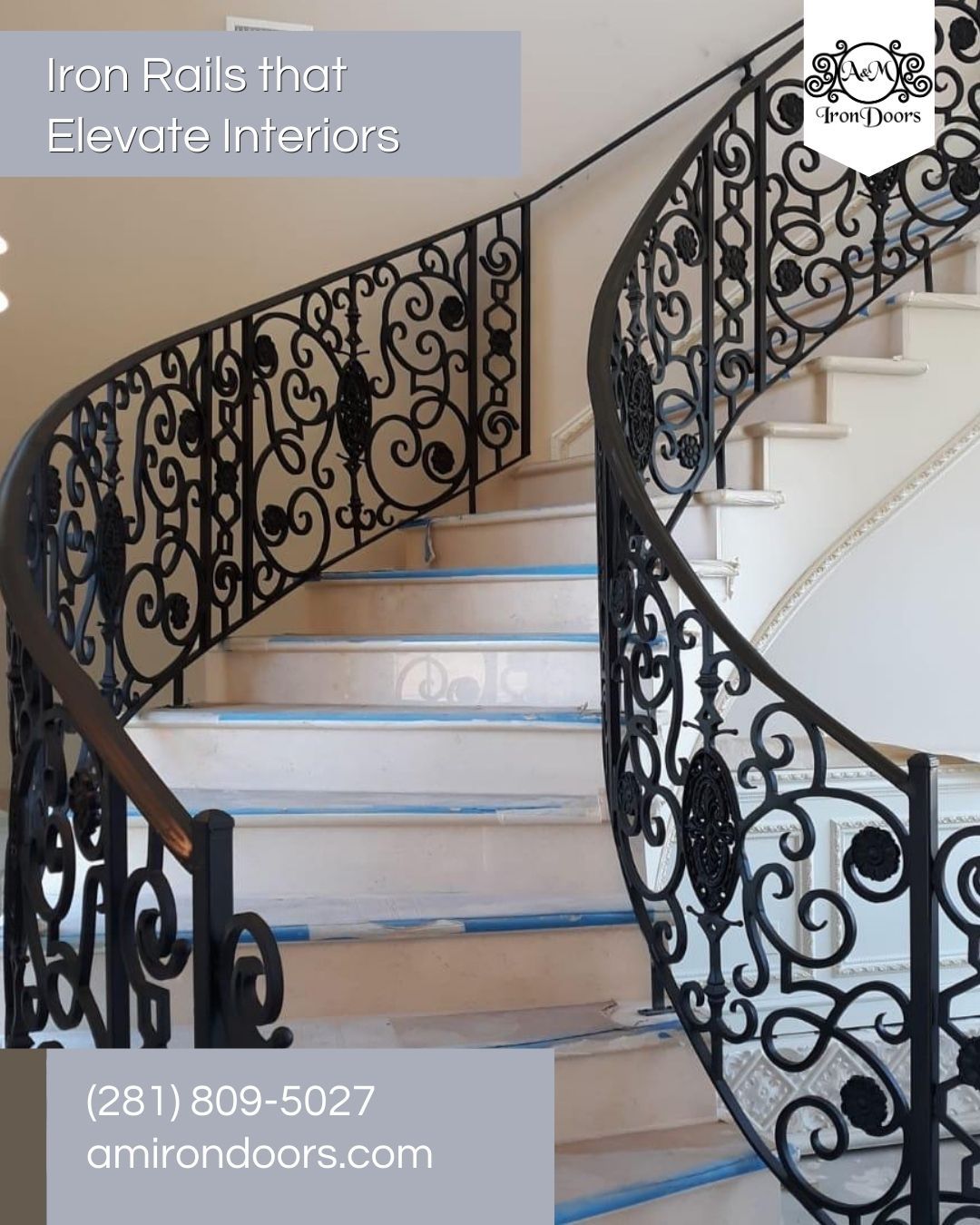 At A&M Iron Doors, we design and craft custom iron rails that combine safety, durability, and elegant design—helping homeowners elevate their interiors with architectural features that stand the test of time.
